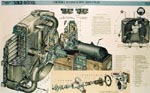 1 - jemný čistič 2 - karburátor 3 - palivové čerpadlo 4 - pravá palivová nádrž |