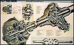 1 - odvětrávací ventil 2 - ložisko diferenciálu 3 - seřizovací podložky 4 - zadní ložisko pastorku 5 - seřizovací podložky 6 - odstřikovací kroužek |